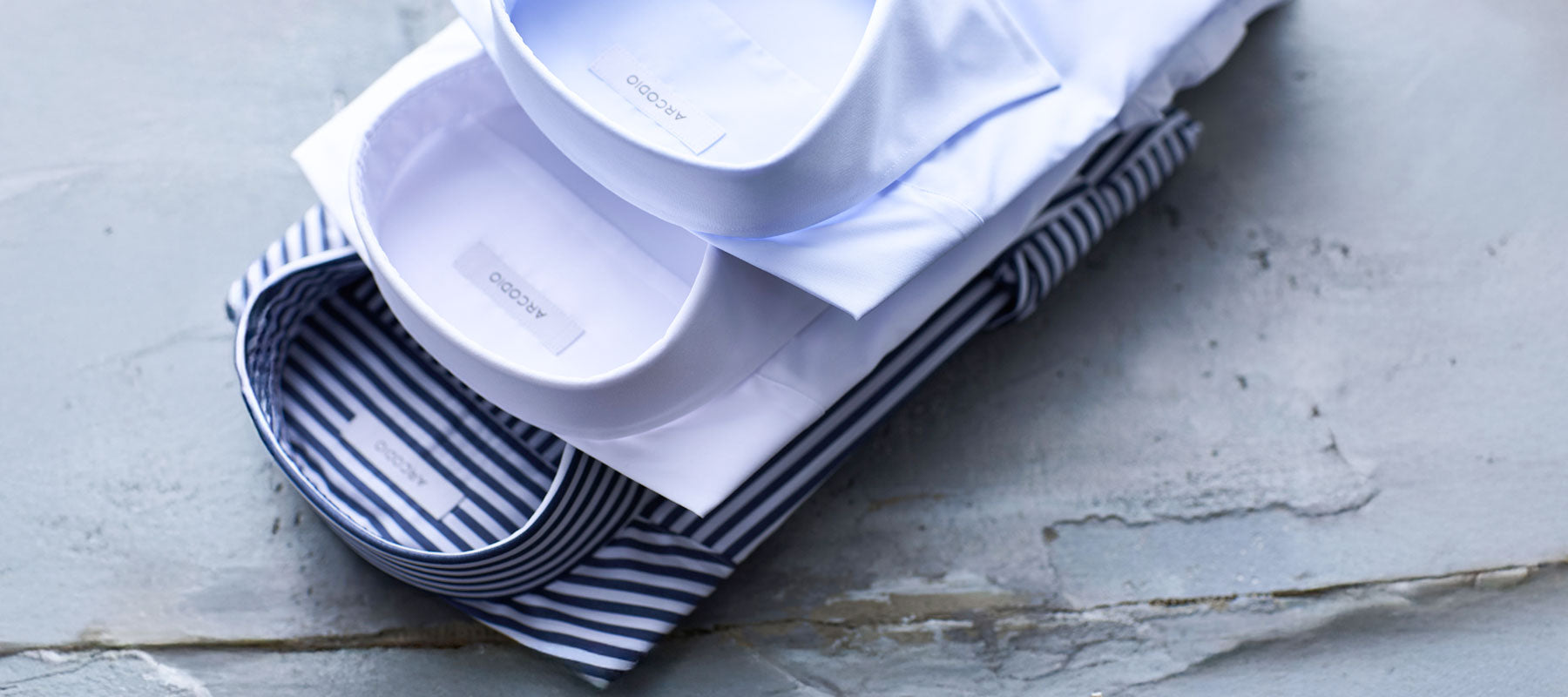 ARCODIO(アルコディオ)は、高級クラシックシャツに採用される「袖の後付け」「ハンドステッチ」など伝統的縫製技法を随所に施し、¥7,000 (税込¥7,700) で提供するドレスシャツ スペシャリティ ブランドです。