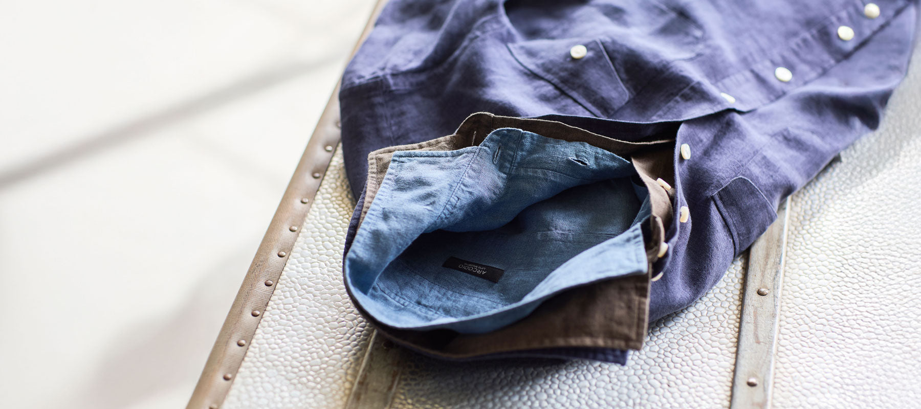 毎年多くのお客様にお買い求めいただくARCODIOのリネンコレクション。フレンチリネンは清涼感と品を兼備。Lino Modernoはバイオ加工により柔らかく着込んだような味わいが魅力。