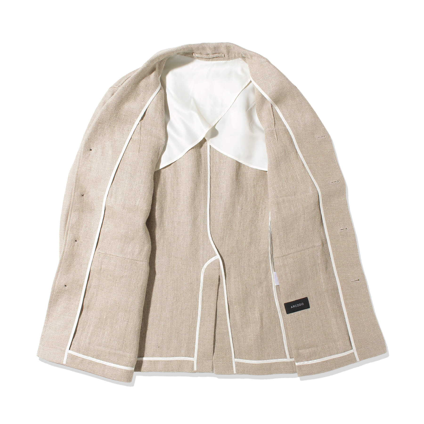 粗野感や嵩高感などリネン本来の性質が最大限に引き出す、″セミウェットスピニング″という紡績方法によって紡がれた、8番手の太いリネン糸を使用したジャケットが新登場。