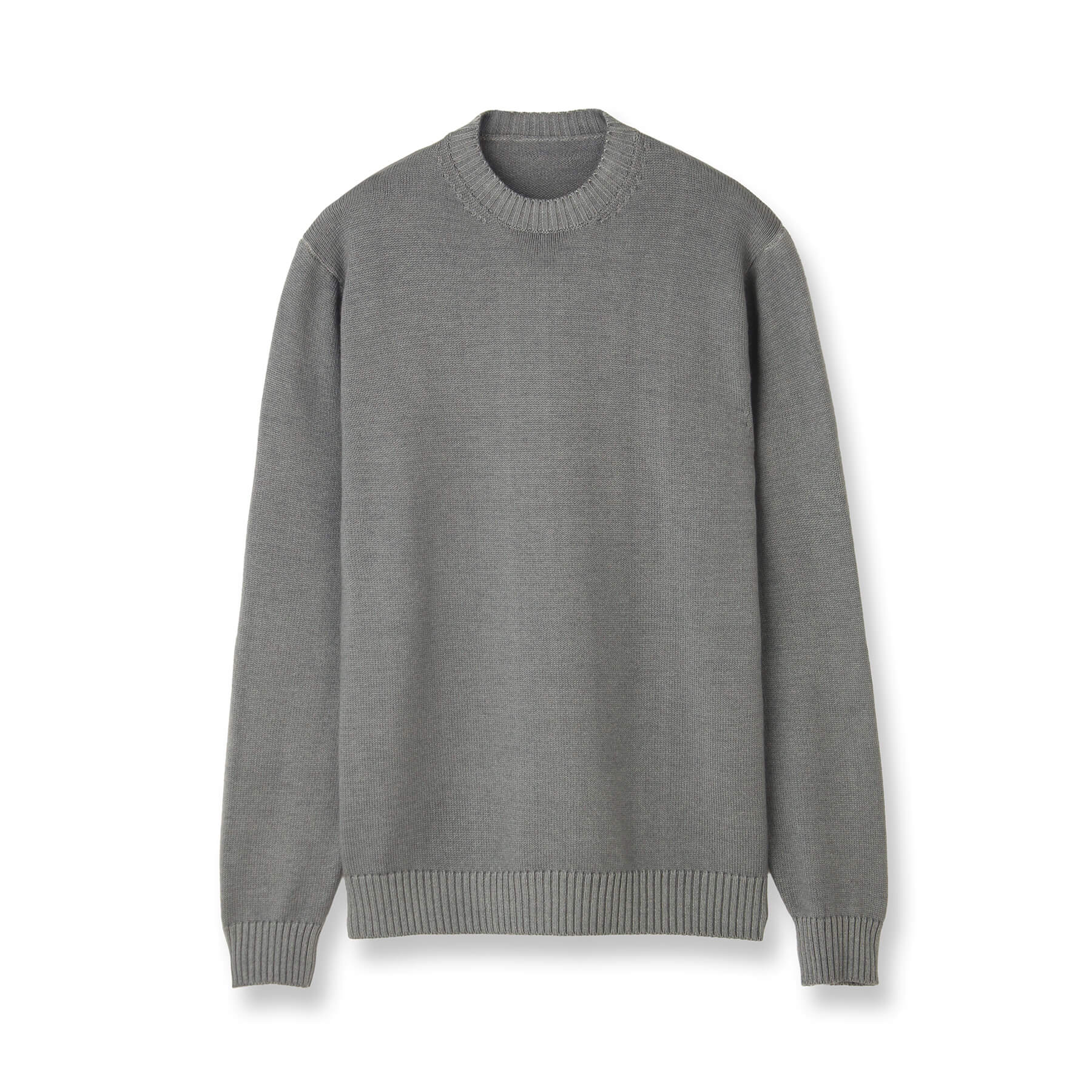 スノー加工とは、霜降りのような独特な色ムラ*(メランジ感)を作り出す特殊な加工技術。素材にダメージを与えることなく、上品なフェード感を表現することができます。長年着込んだような奥行きと陰影が生まれ、シンプルなニットにニュアンスのある表情が加わります。