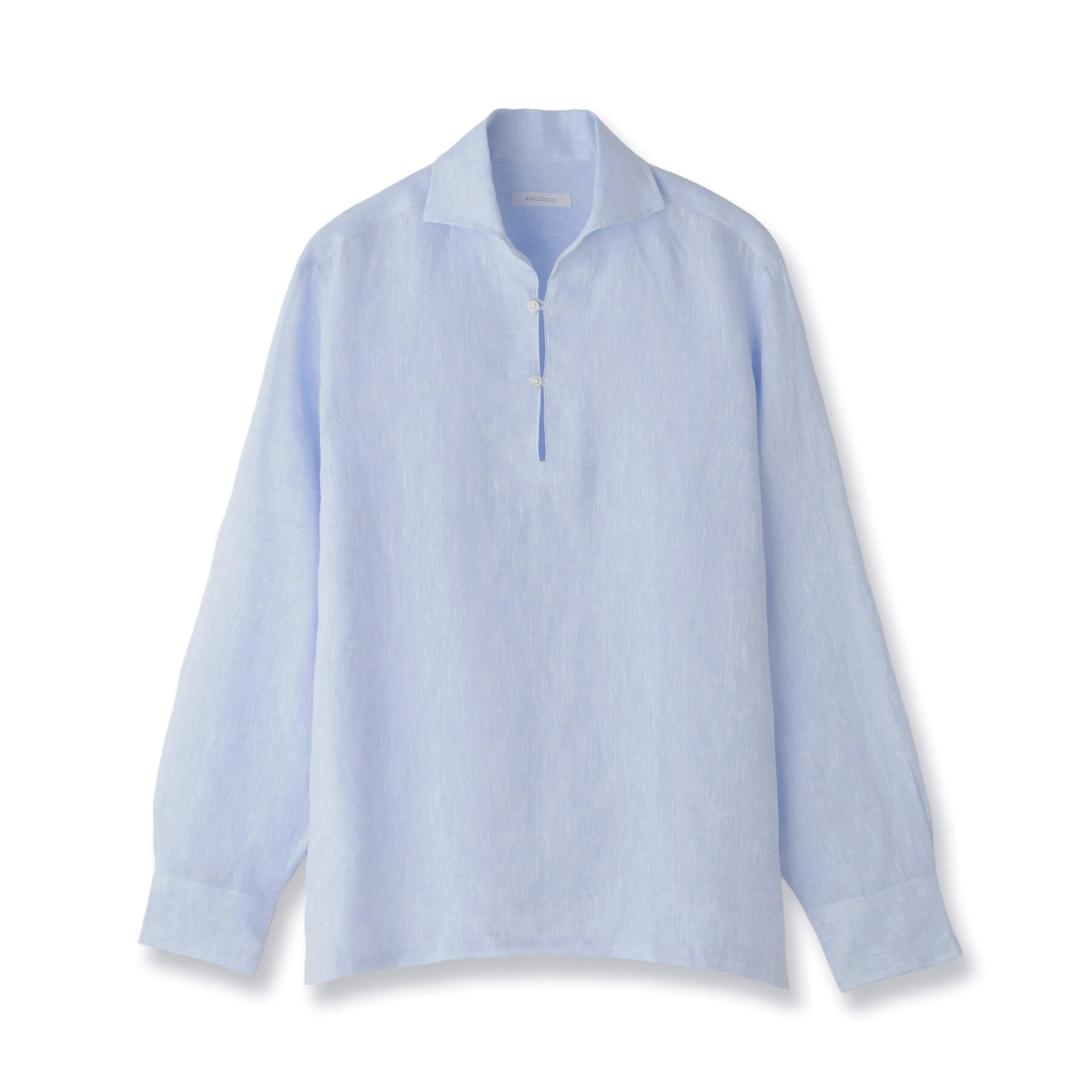 フレンチリネンシリーズの中でも特に人気の高いカプリシャツが、襟元とシルエット、芯地を見直してリニューアル。