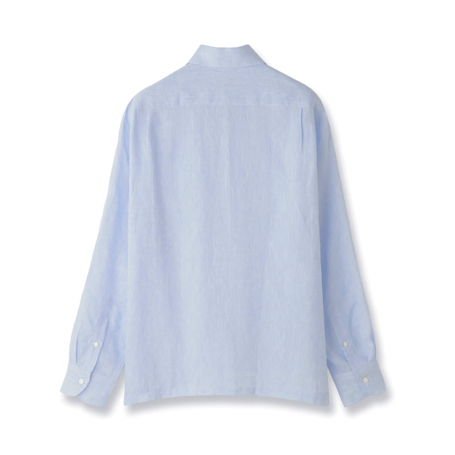 通常のフレンチリネンシャツと比べ、ややゆとりのあるシルエットでご用意しております。基本的には普段通りのサイズ選びをおすすめしております。