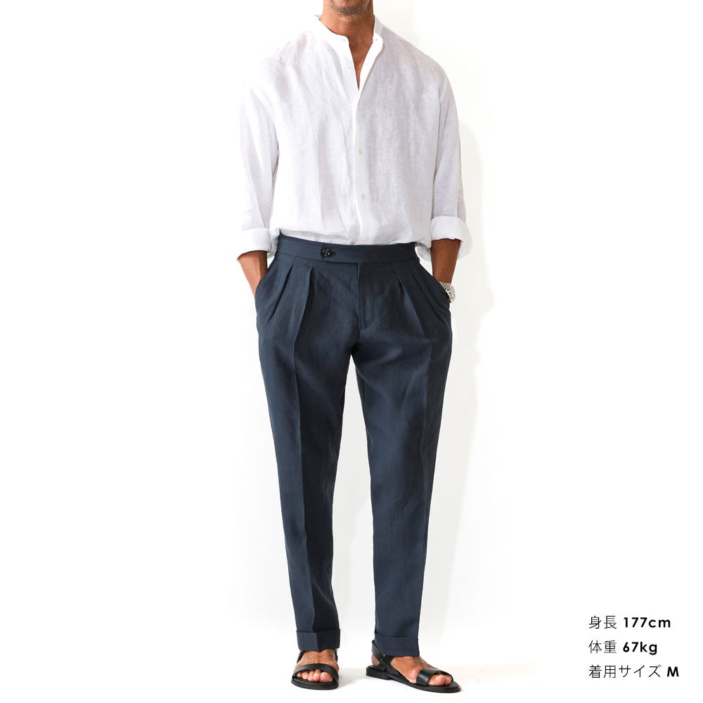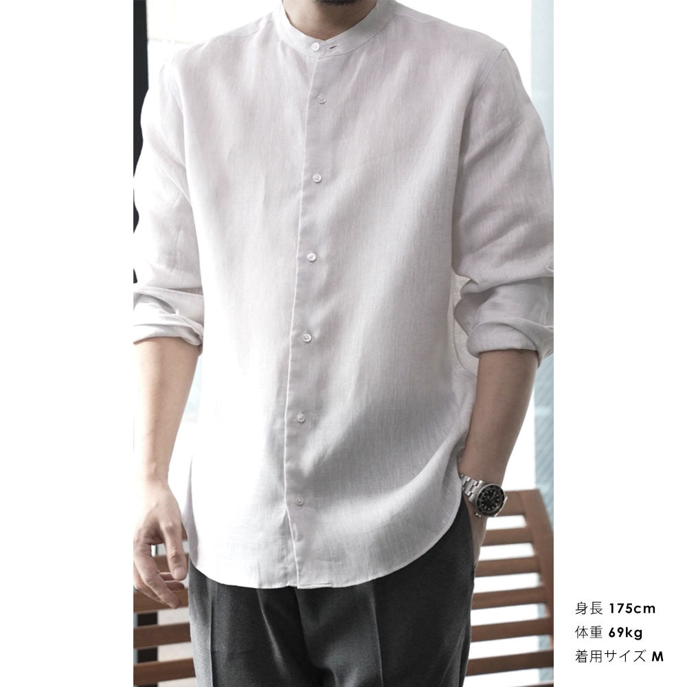 リネンスタンドカラーシャツ