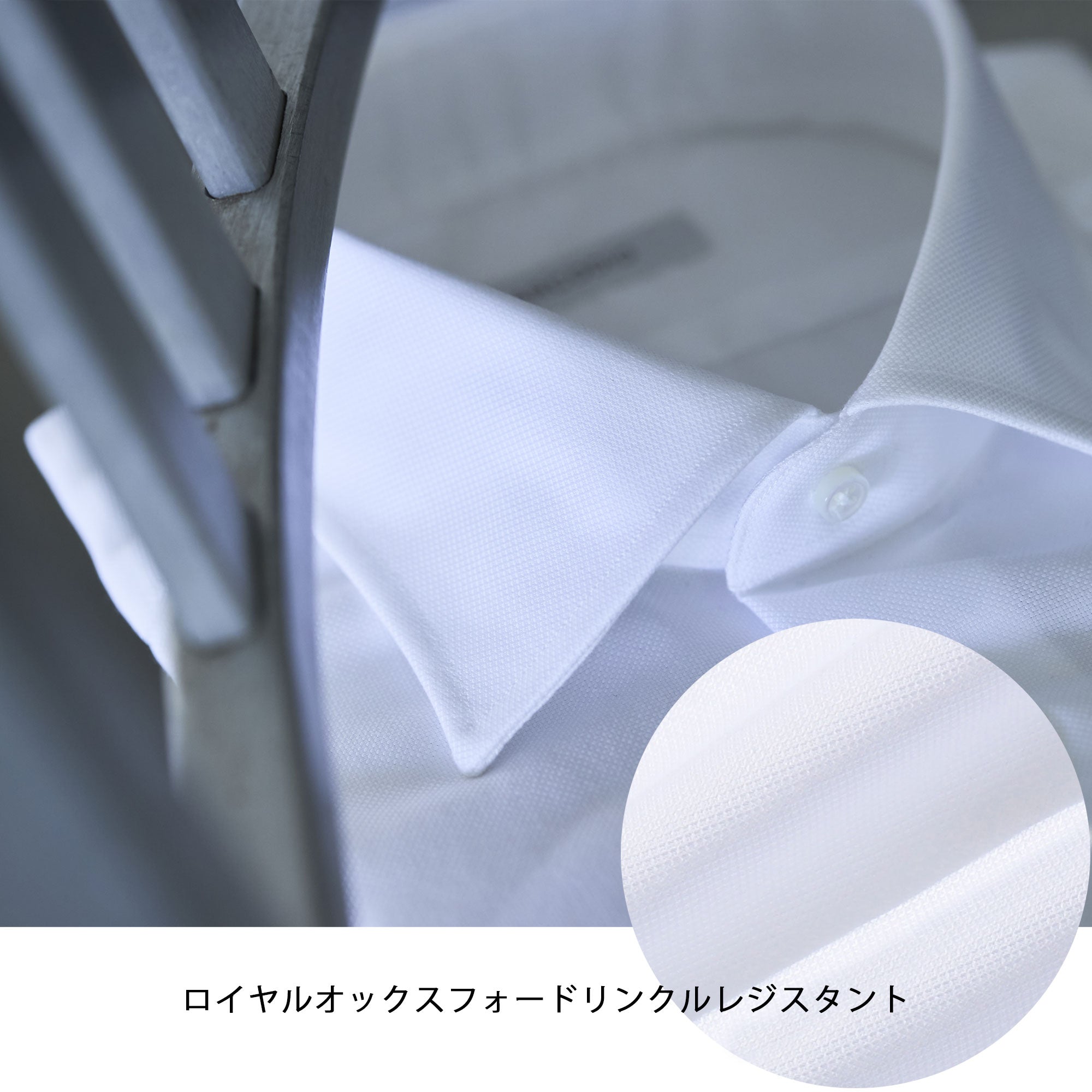 ロイヤルオックスフォードは、生地表面に現れる繊細な菱形の織り柄が特徴で、その立体的な組織から生まれる上品な光沢感が魅力の素材です。