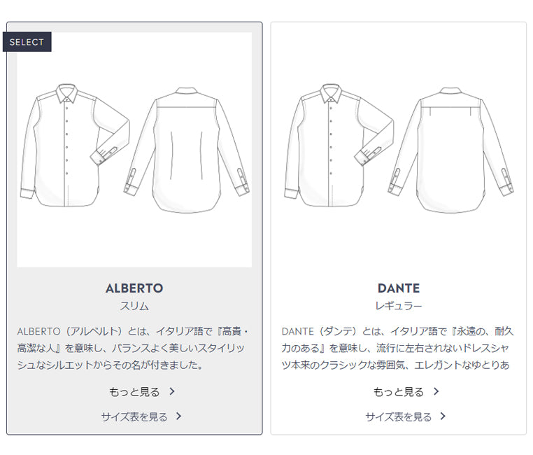 -ALBERTO(アルベルト)・・・既成品と同じく、背ダーツのあるスリムフィットシルエットです。