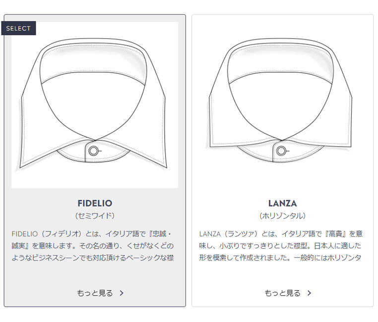 サイズガイドはこちらお好みの襟型を下記の4種類からお選びください。