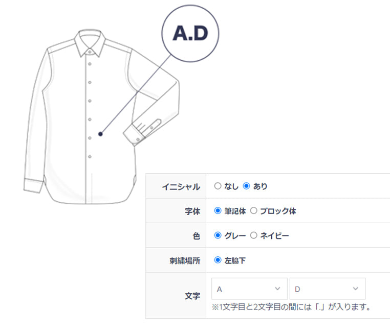 イニシャル刺繍をご希望の方は「あり」を選択してください。