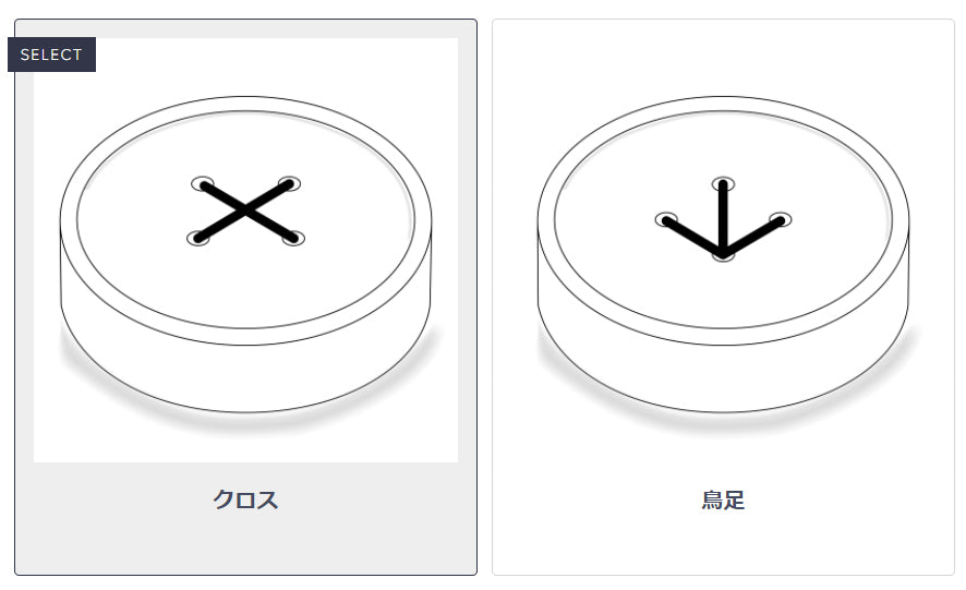 既製品は全てクロス付けですが、カスタムオーダーでは鳥足付けでのシャツ作製が可能です。