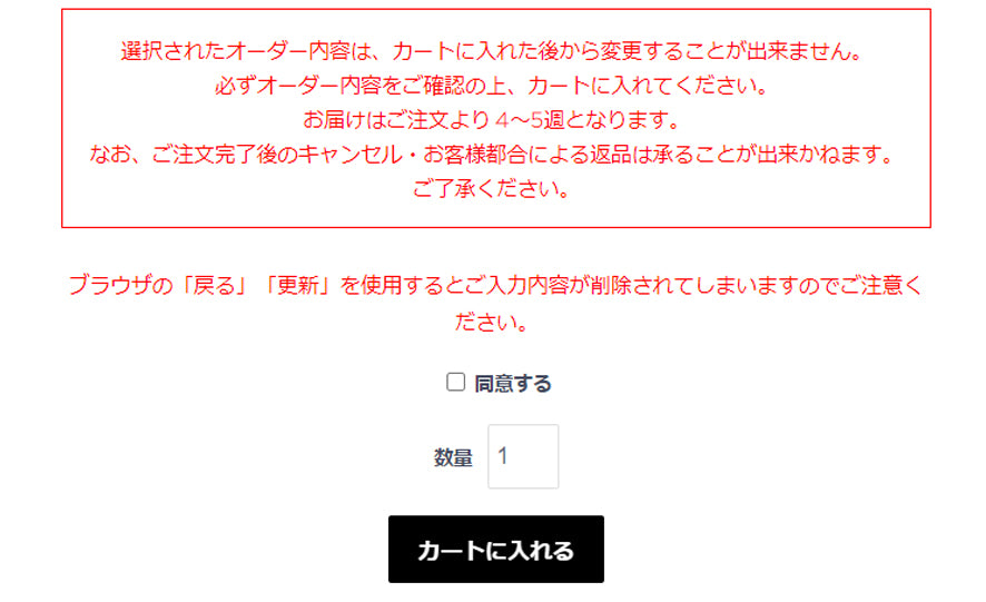 選択内容をご確認いただき、問題なければ【同意する】にチェックを入れて、【カートに入れる】を押してください。