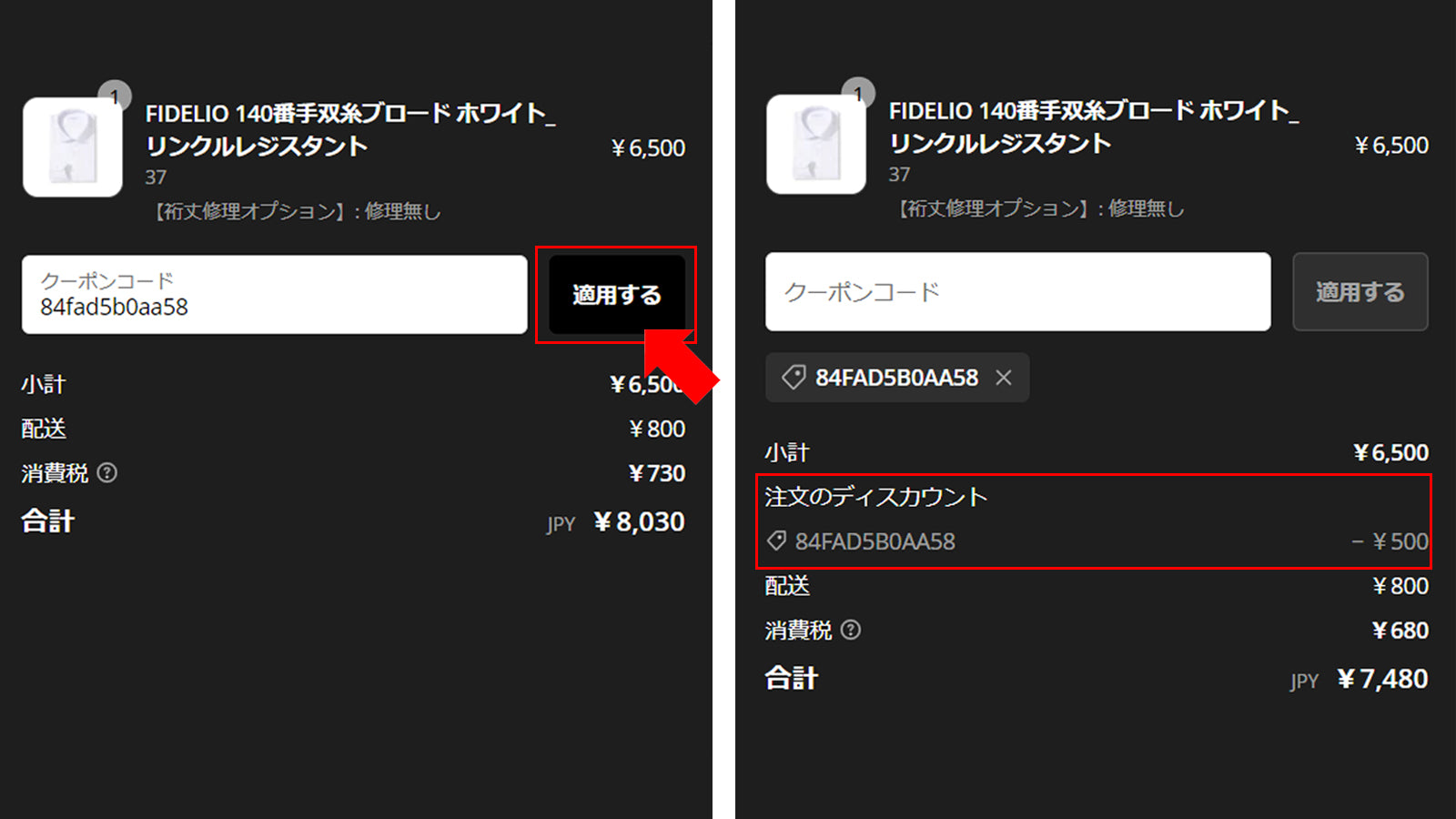 もし、今回のお買い物での使用をやめたい場合は、クーポンコードの×ボタンで削除してください。削除してもお客様のクーポンは消去されず保持され続けます。