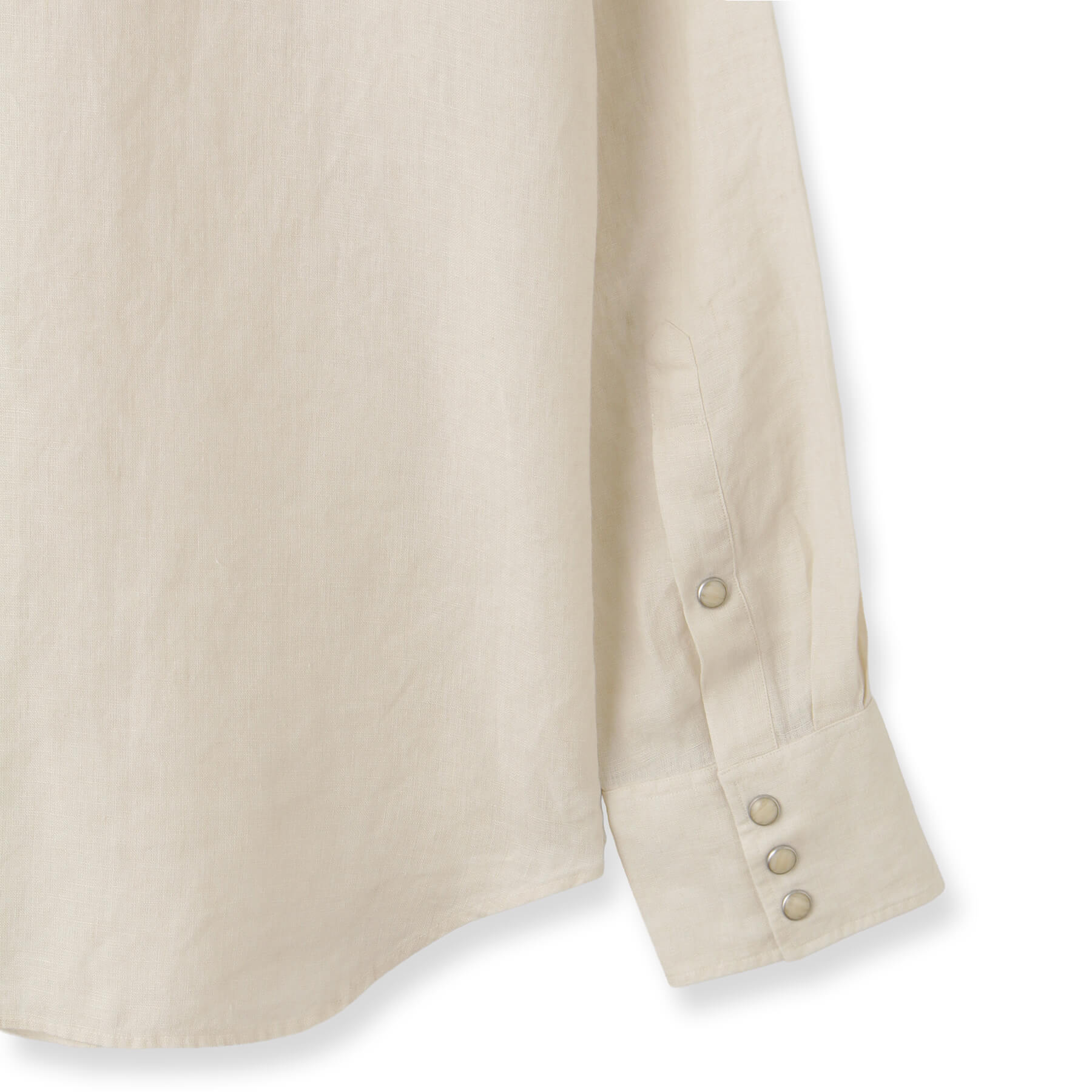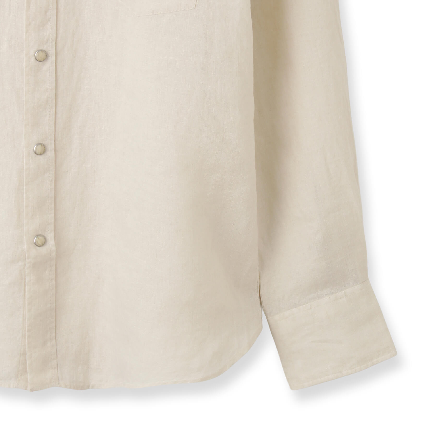生地表面にはリネン特有の糸の節(ネップ)やムラが見られ、細かいシワが付きやすい素材ですが、これもまたリネンならでは。洗うごとに優しく柔らかな肌触りへと変化し、肌に馴染むため、味わい深く、洗いざらしはもちろん、きちんとアイロンをかければキレイめなカジュアルスタイルにもマッチします。
