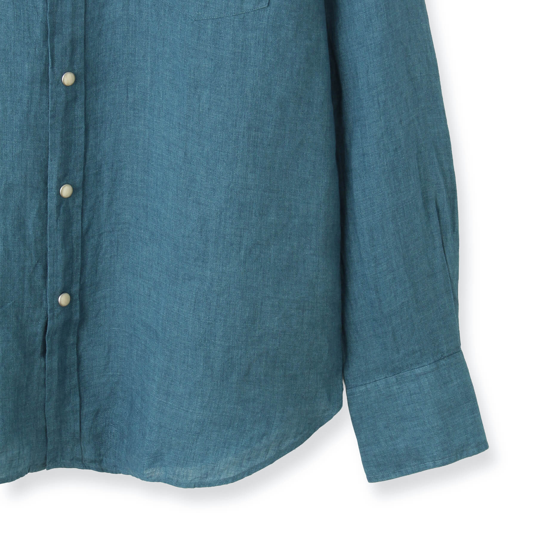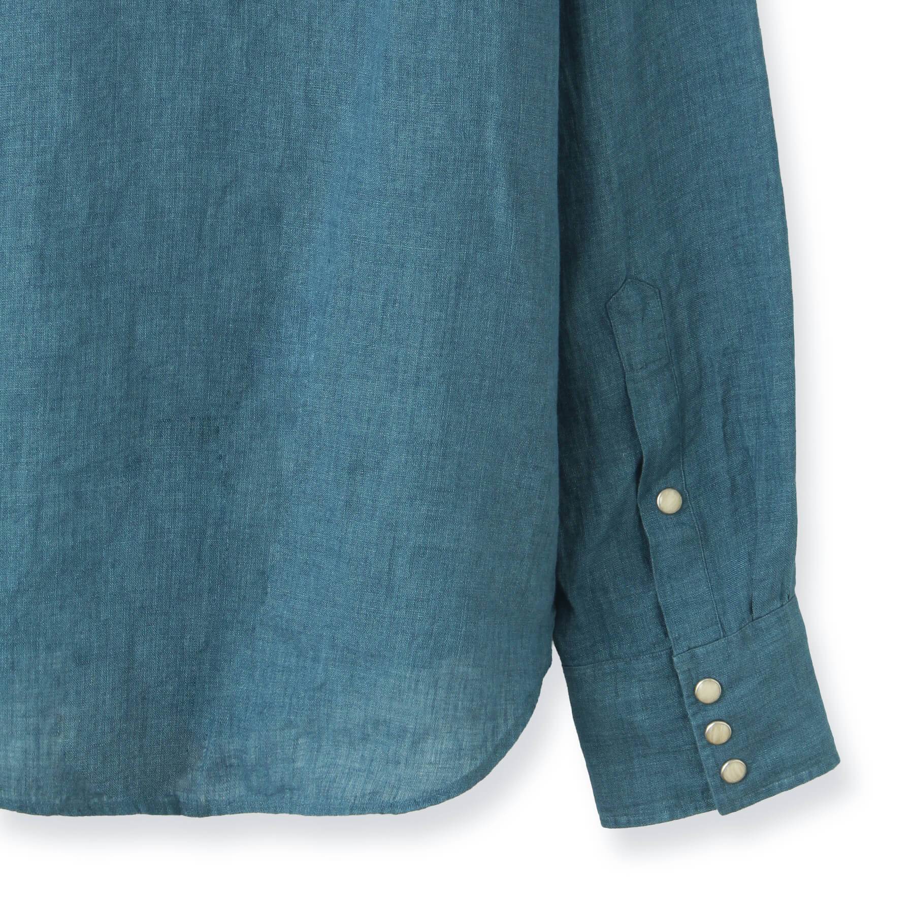 生地表面にはリネン特有の糸の節(ネップ)やムラが見られ、細かいシワが付きやすい素材ですが、これもまたリネンならでは。洗うごとに優しく柔らかな肌触りへと変化し、肌に馴染むため、味わい深く、洗いざらしはもちろん、きちんとアイロンをかければキレイめなカジュアルスタイルにもマッチします。