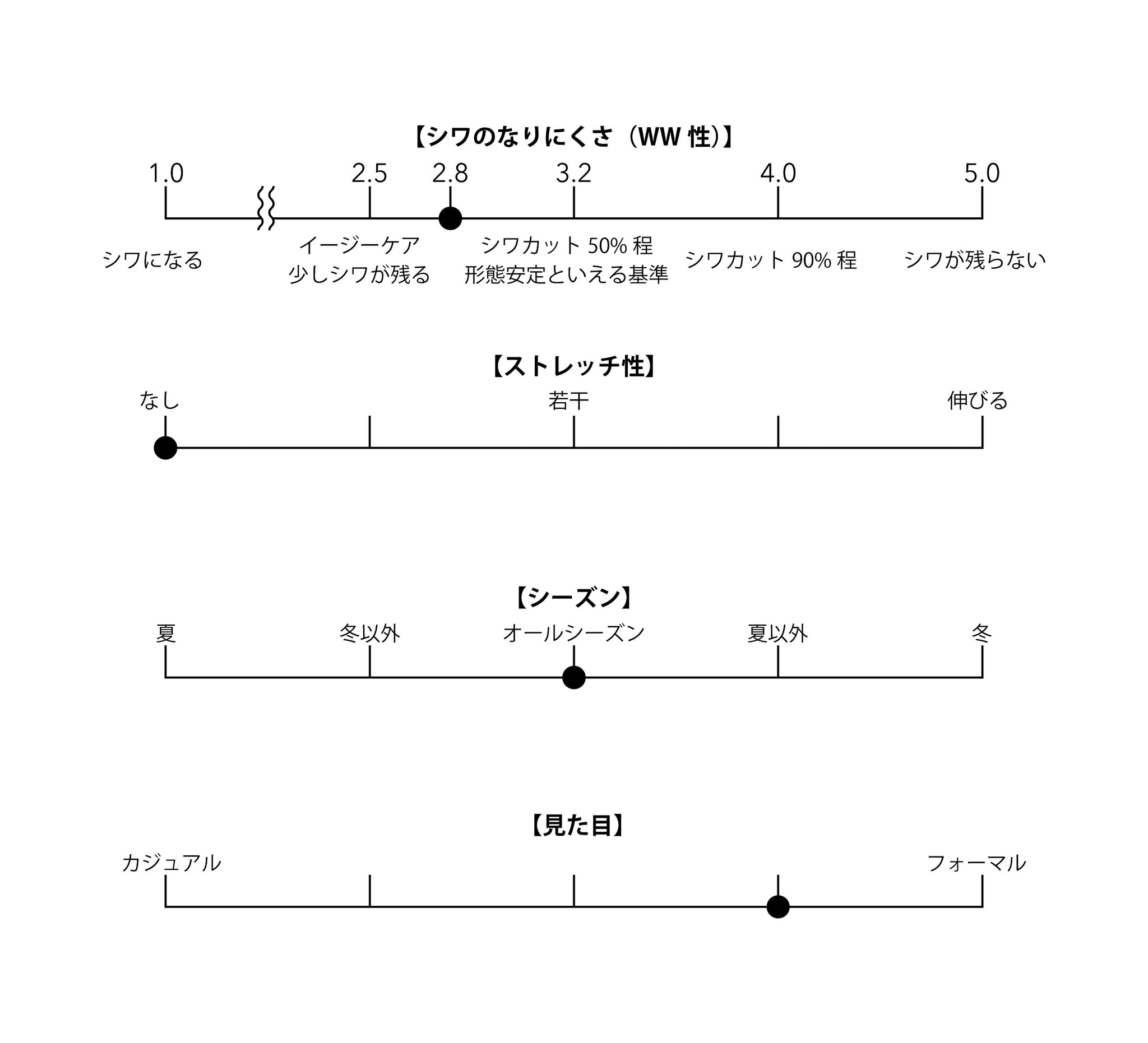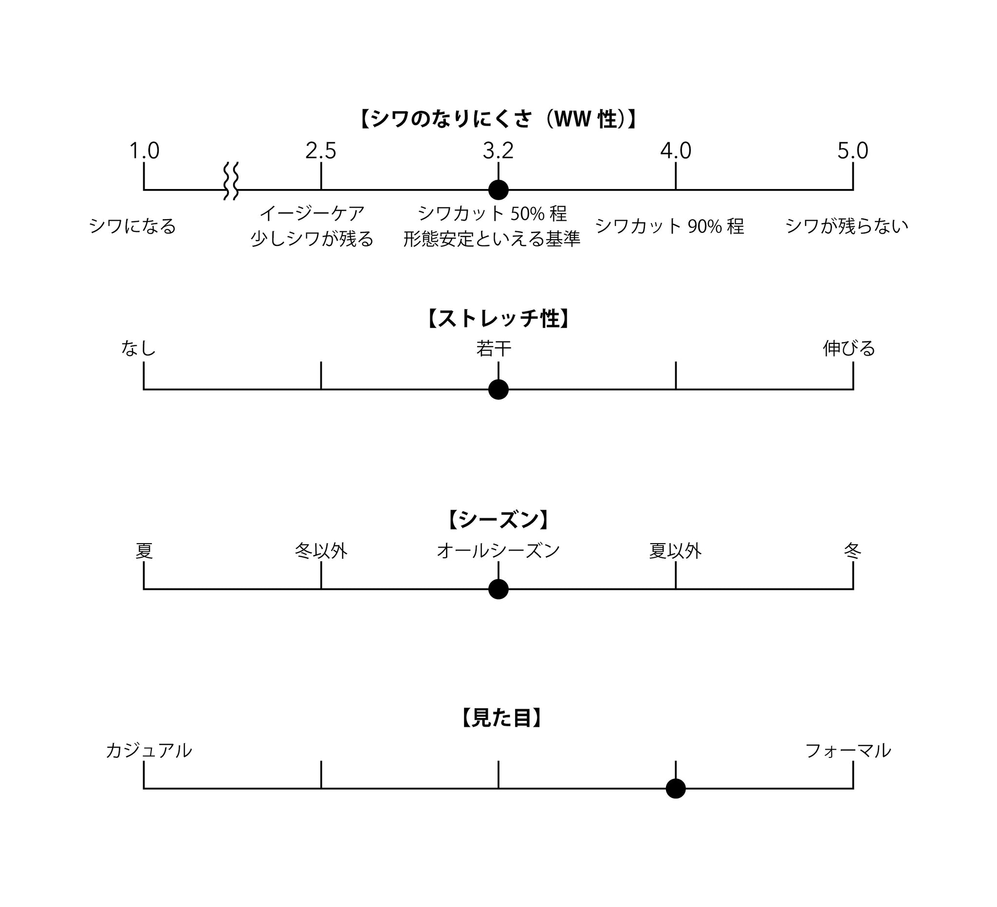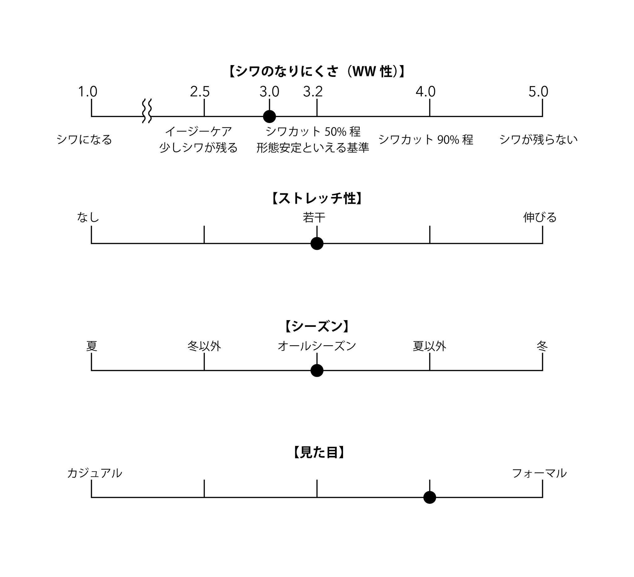コットンの風合いや柔らかさがありながら、ビジネスパーソンに嬉しい3つの機能(ストレッチ性、防シワ加工、透けにくい)が備わっているため、着用しやすくお手入れの手間も少なくなっています。