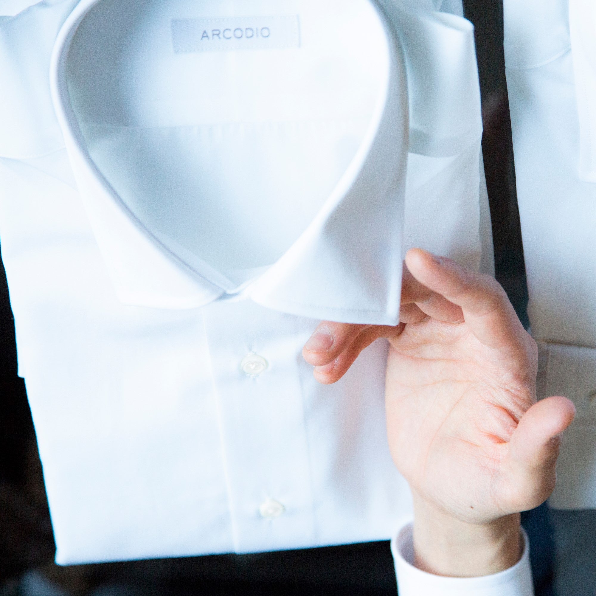 シャツの襟型は、スーツ着用時の印象を大きく左右するため、一番こだわったポイントです。
