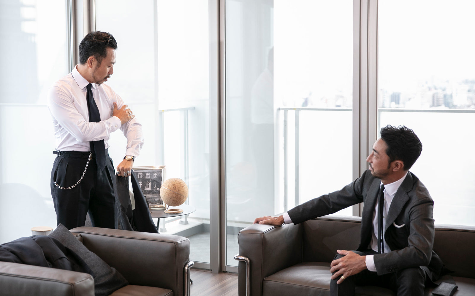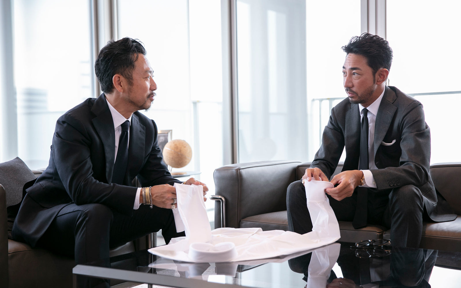 Special Interview Vol.4の干場氏と神藤氏のクロストーク取材・撮影をしたのは、2019年8月末。仕事着として普段から白シャツを好んで着ていらっしゃる干場氏と、仕事柄、世界各国の超一流シャツを着てこられた神藤氏。ビジネスでスーツを着る大人の男性にとって、白シャツは、一番基本のアイテムである事や、自分でアイロンをかけるからこそ気が付く、商品の良し悪し。ネクタイの幅に合わせてシャツの襟型をセレクトするこだわりなど、大変貴重なお話を沢山伺いました。