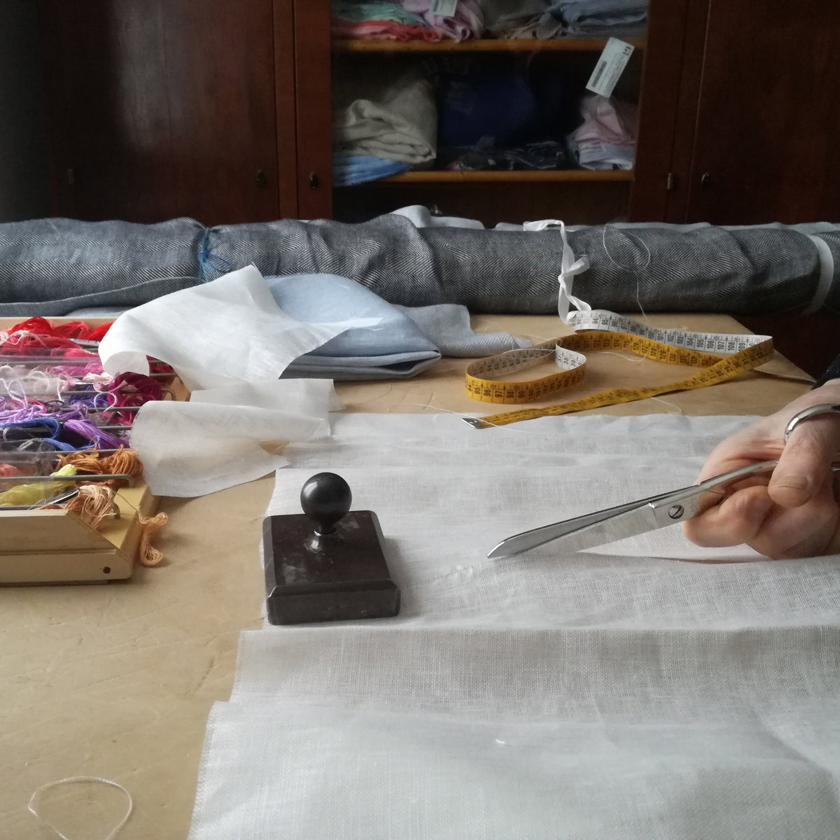 Matteo---日本に出荷される大部分のものは昔と同じく 家庭で縫っていただく内職の方に縫製していただいています。ピストイアには刺繍文化がありますから 縫うことができる職人さんがたくさんいます。そこは日本だけでなく、他のイタリアの街とは少し違うと思います。
