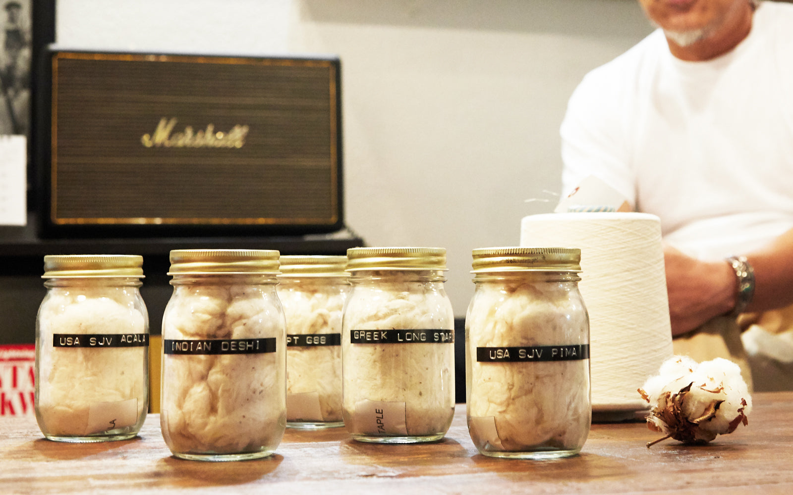 ---篠倉 そうです。世界の各産地の綿花です。本当に産地によって特性や、繊維長が全然違うから、面白いですよ。有名なのは『ギザ』『新疆』『スーピマ』で、よく世界三大綿なんて言われてます。
