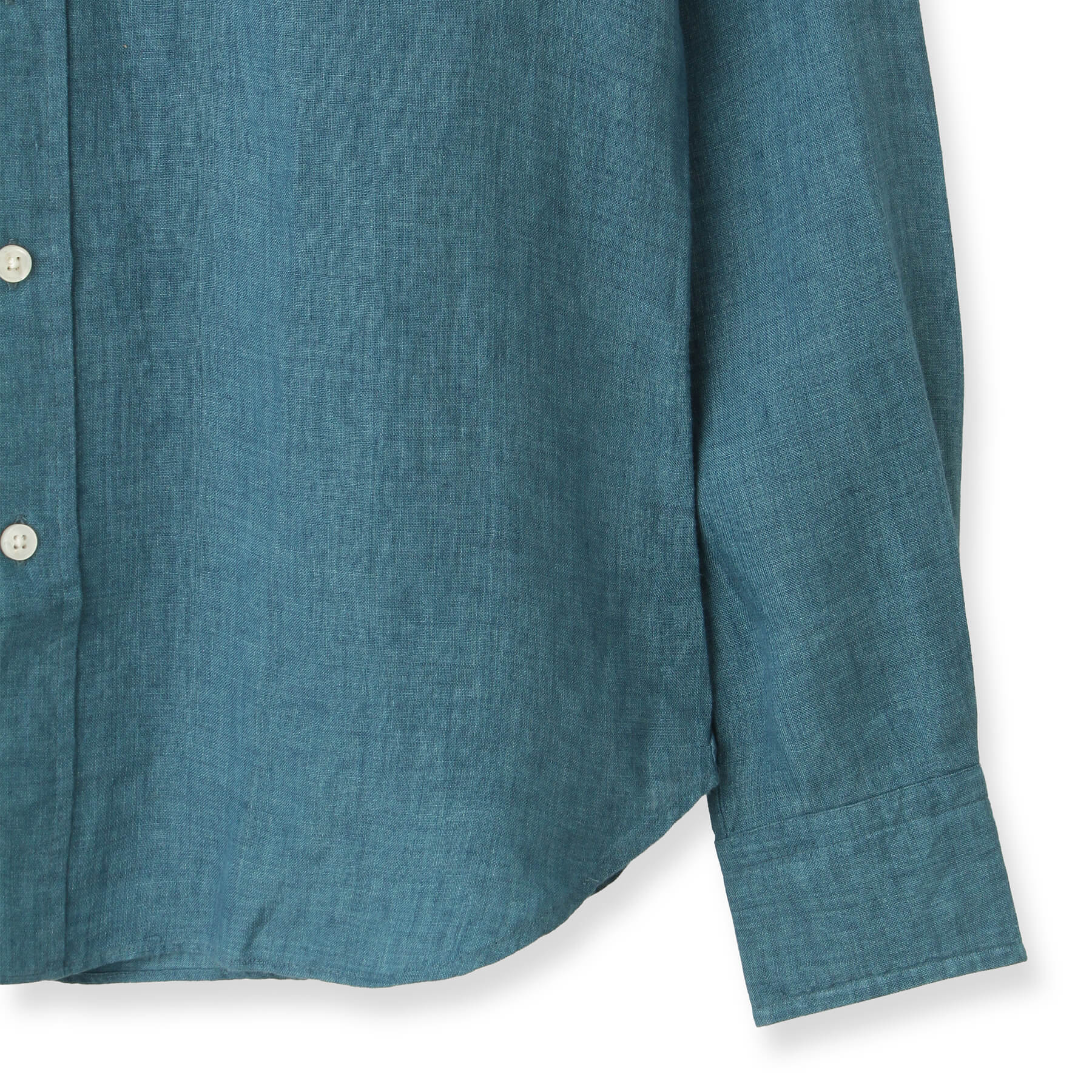 生地表面にはリネン特有の糸の節(ネップ)やムラが見られ、細かいシワが付きやすい素材ですが、これもまたリネンならでは。洗うごとに優しく柔らかな肌触りへと変化し、肌に馴染むため、味わい深く、洗いざらしはもちろん、きちんとアイロンをかければキレイめなカジュアルスタイルにもマッチします。